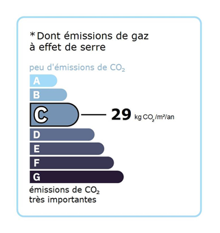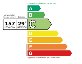 Le DPE doit être réalisé à partir d’un logiciel validé. Le résultat du DPE permet de générer une double étiquette englobant l’énergie et les émissions de gaz à effet de serre. C’est la plus mauvaise des deux performances qui sera retenue pour la note. L’échelle varie de A (consommation faible, inférieure à 70 kWhep/(m².an) et émissions de GES inférieure à 6kgCO2/(m².an)) à G (consommation élevée, supérieure à 70 kWhep/(m².an) et émissions de GES inférieure à 6kgCO2/(m².an))